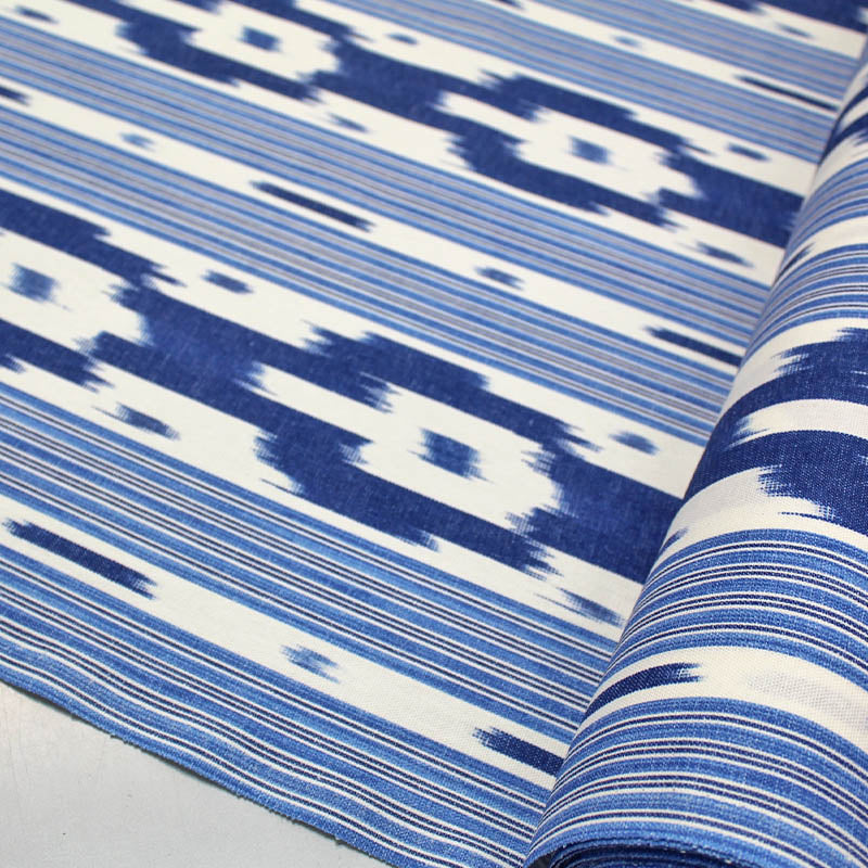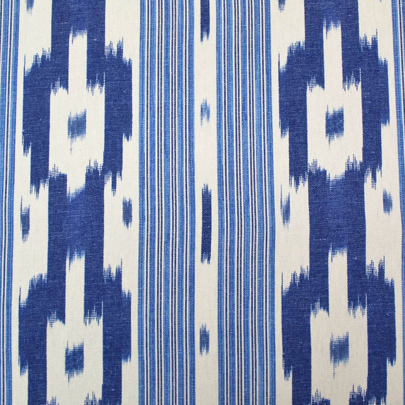Gorgeous Ikat print Furnishing Fabric featuring a blue and white Ikat design reminiscent of Greek island holidays. In high quality furnishing weight cotton, it is perfect for curtains, blinds and cushions in any blue or Mediterranean themed decor.