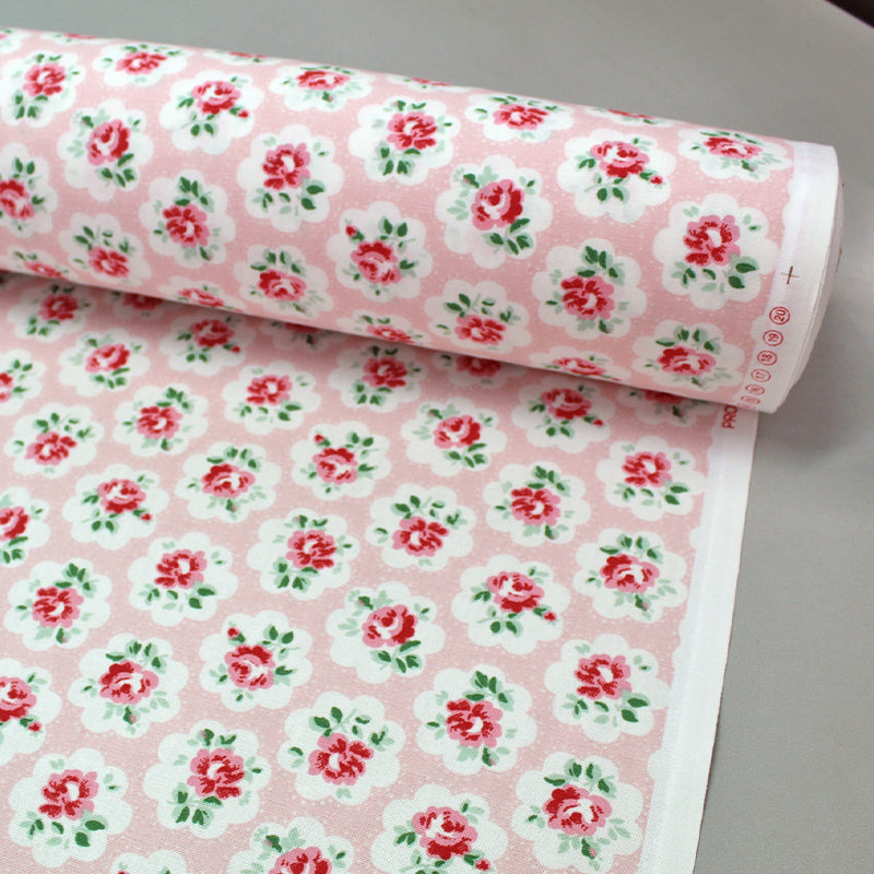 Simply gorgeous Cath Kidston print featuring pretty pink roses on a pale pink and white 100% cotton. This is a classic Cath Kidston rose print suitable for soft furnishing projects such as curtains, blinds or cushions. It's so pretty it would work in a bedroom or living room.